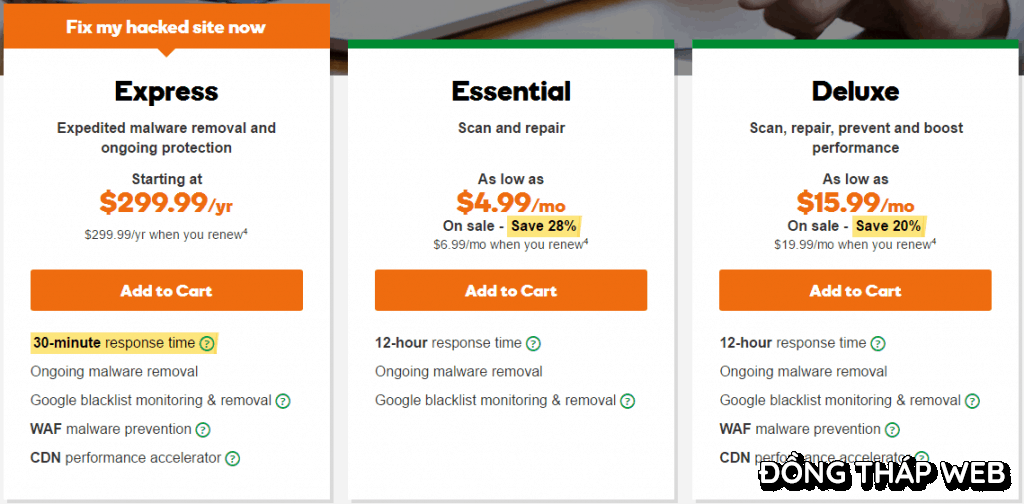 Theo mình thấy mức giá ở đây khá ổn sốvới các dịch vụ của Sucuri hiện tại. Rẻ hơn khá nhiều với Sucuri, sẽ phù hợp với khách hàng phổ thông hơn.
